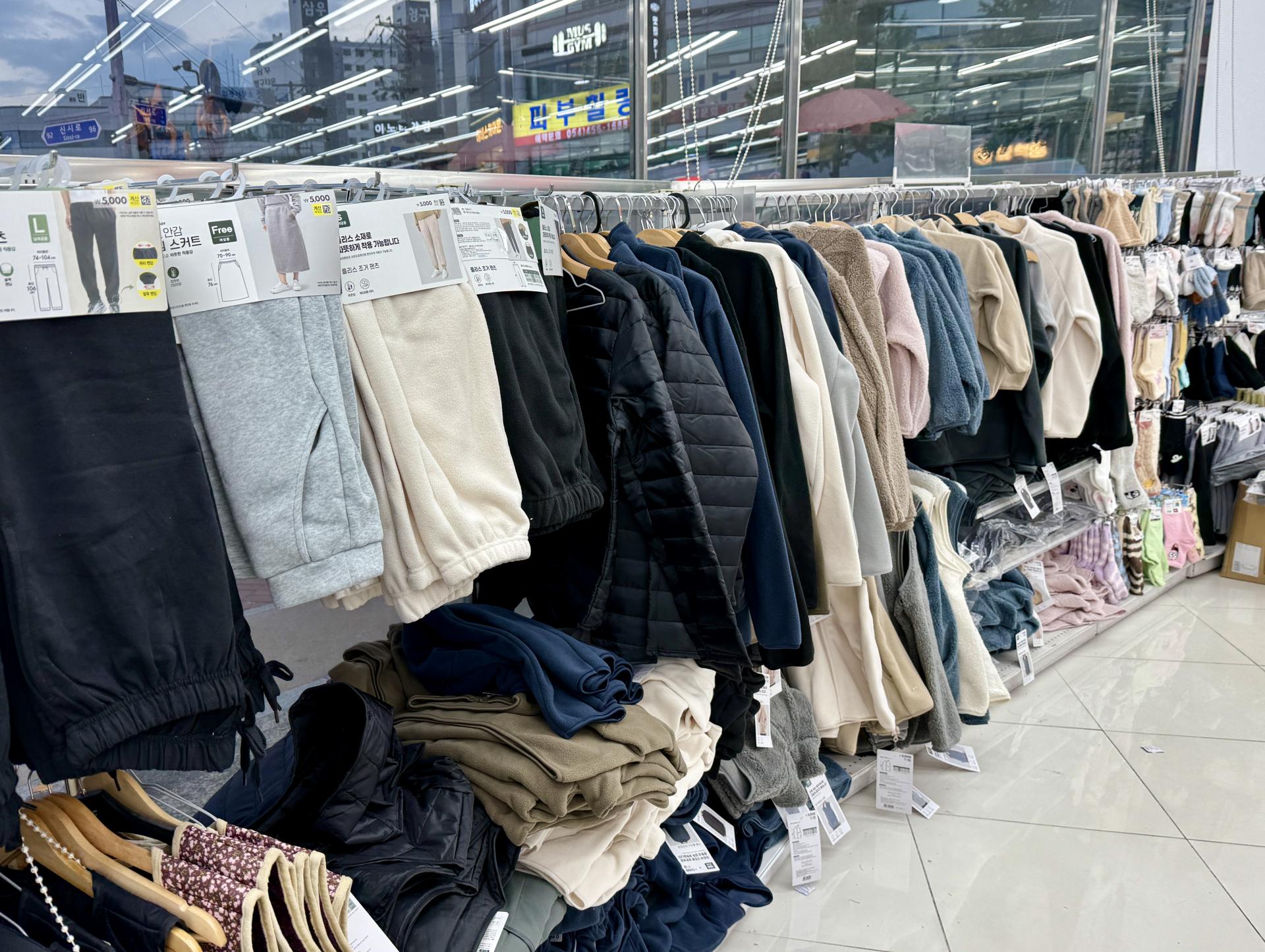 다이소 의류 라인이 초저가 제품으로 인기리에 판매되고 있다.