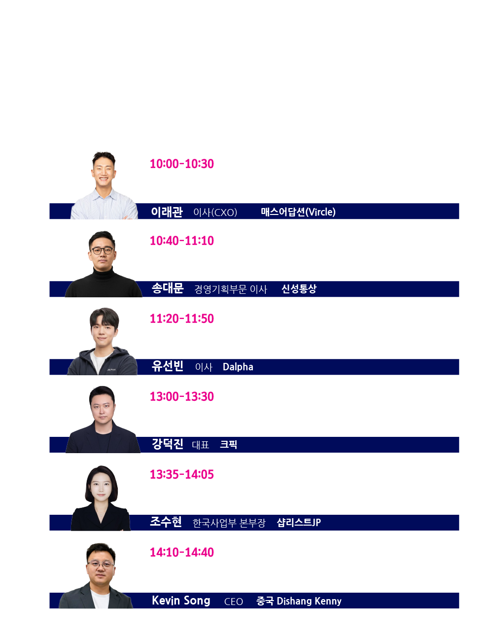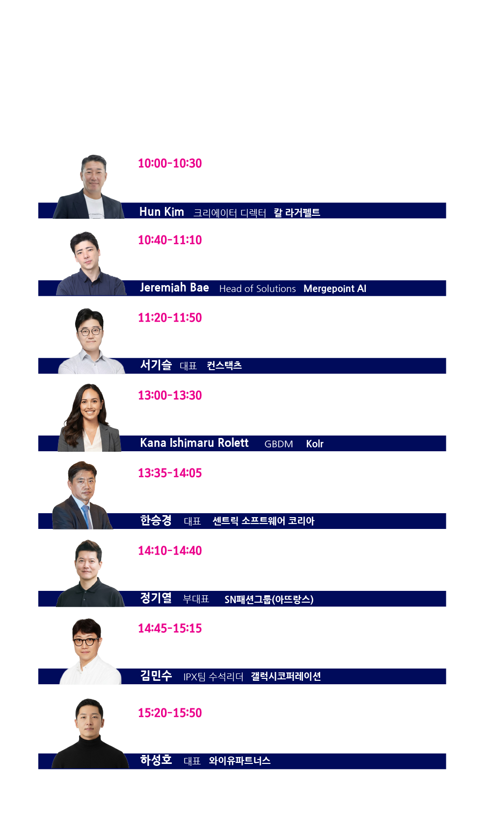 • 더 많은 분들이 함께 할 수 있도록 컨퍼런스 신청은 1인당 3개 강연만 신청가능합니다. 양해 부탁드립니다.  (강연당 100명 선착순 마감)
